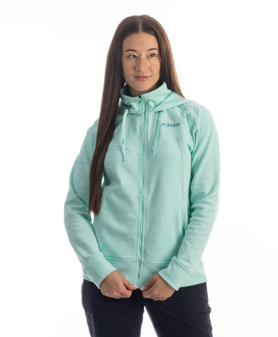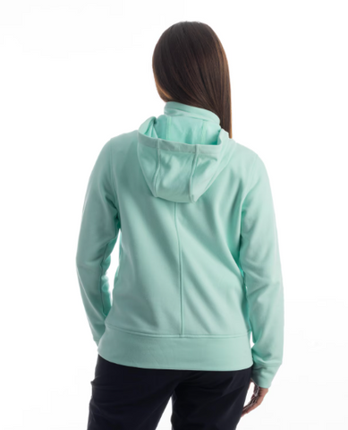 The women’s Basin Hoodie blends polyester and cotton for high-performance comfort. Quick-drying polyester and breathability cotton keep you dry while stretch fabric offers optimal movement. The full zip design features a zip-through stand-up collar for heat-trapping comfort, while seaming details provide a flattering look perfect for lounging or being active.
